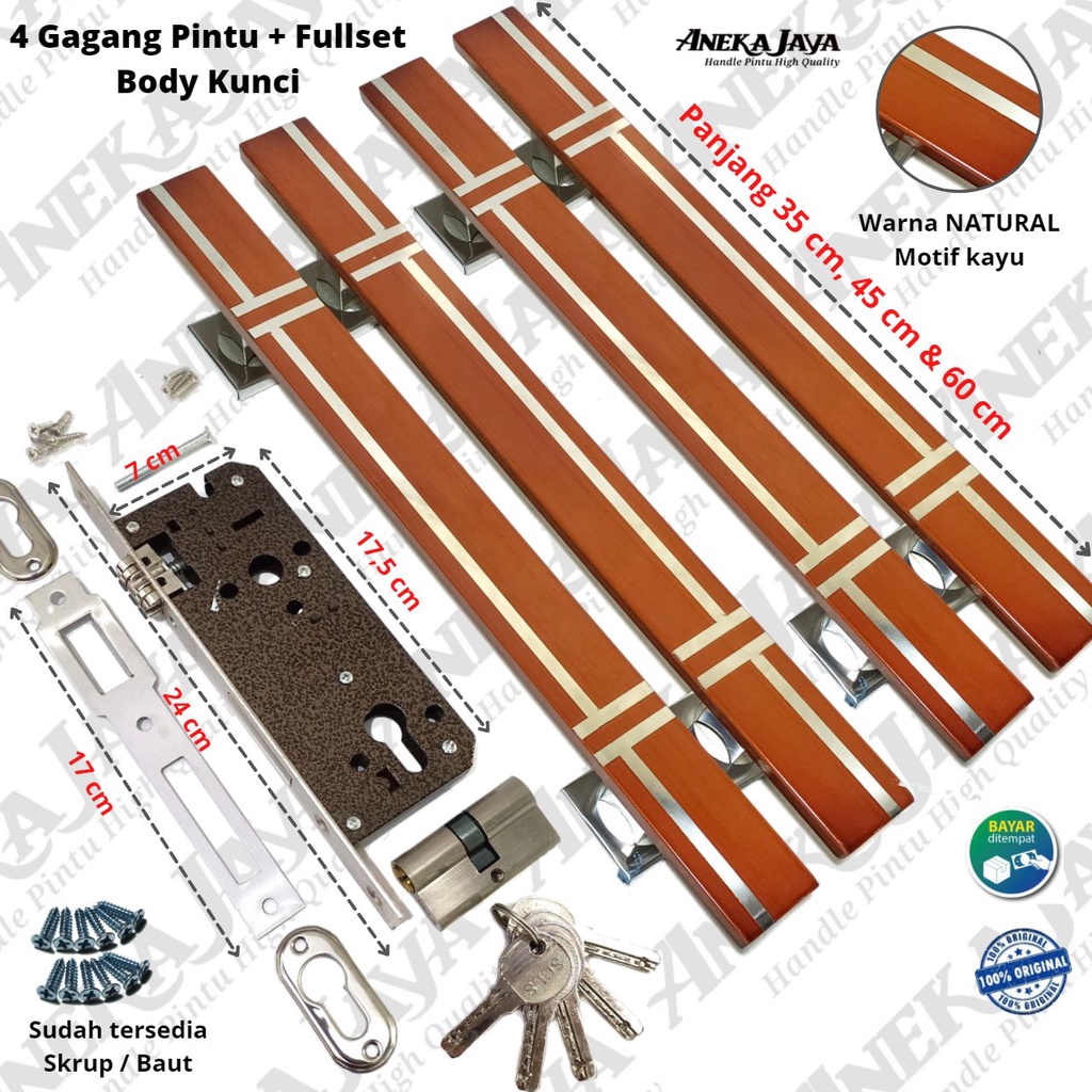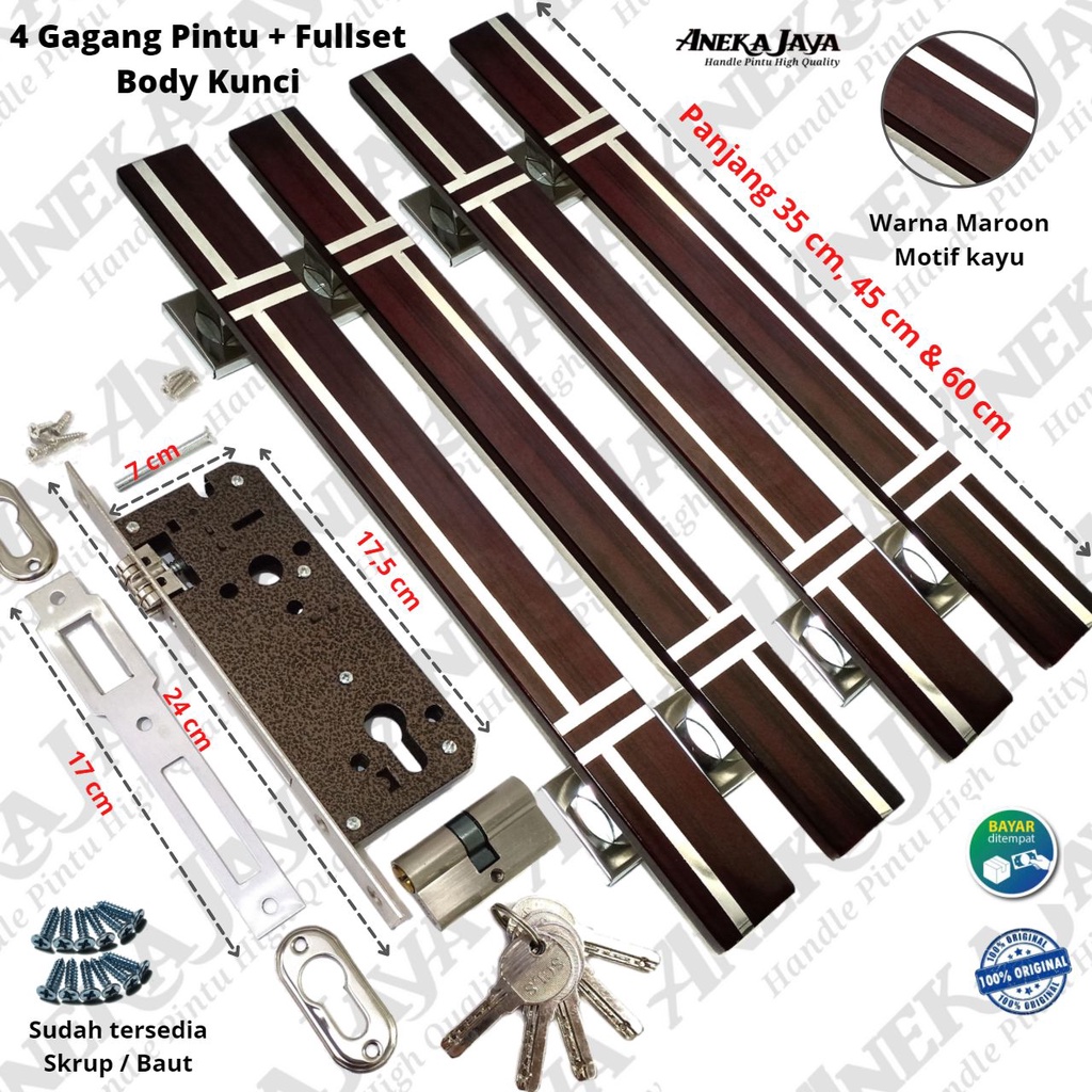 Handle Set Kunci Panjang 35 cm 45 cm 60 cm / Gagang pintu rumah warna hitam pintu kupu tarung