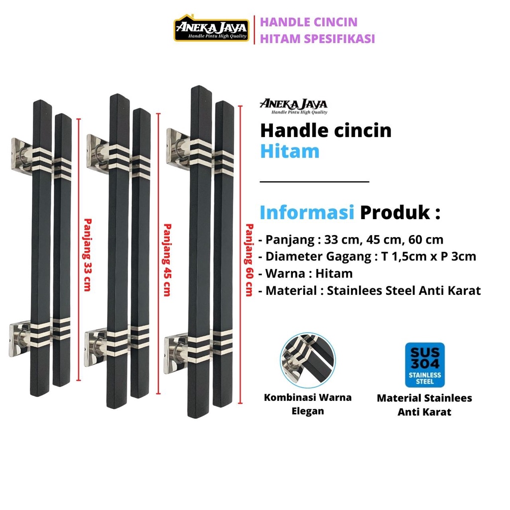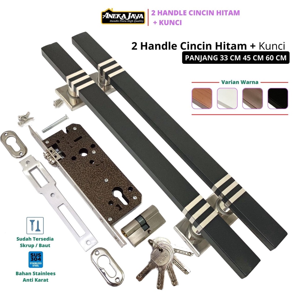 Satu Set Handle Pintu Kunci Rumah Panjang 33 cm 45 60 cm Gagang Tarikan Pintu Pegangan Depan Warna Hitam Putih Natural M