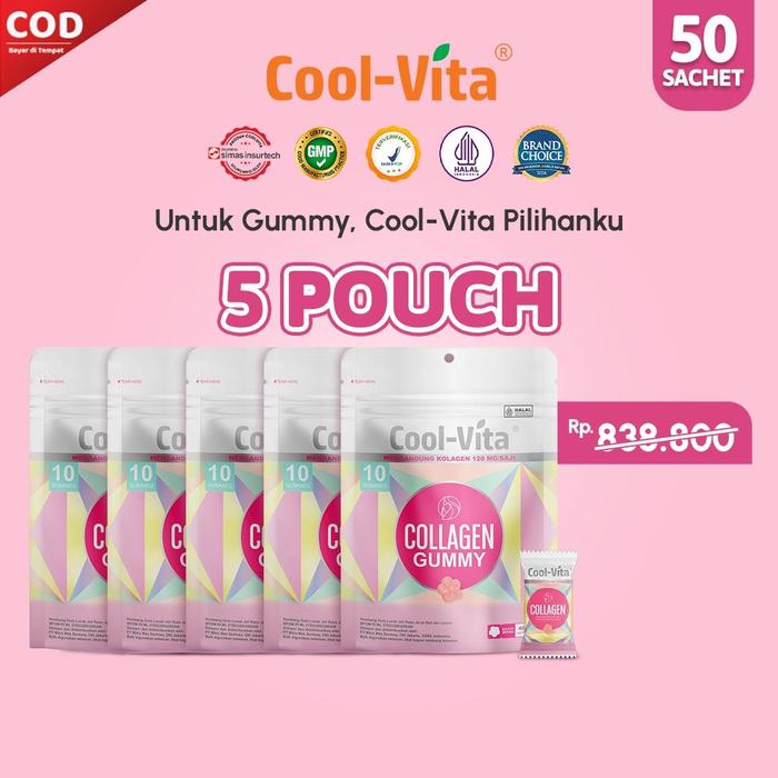 5 POUCH COOLVITA COLLAGEN GUMMY RASA JERUK BALI DAN LEMON (1 POUCH 10 GUMMY) | RASA JERUK BALI DAN LEMON SEGAR | VITAMI