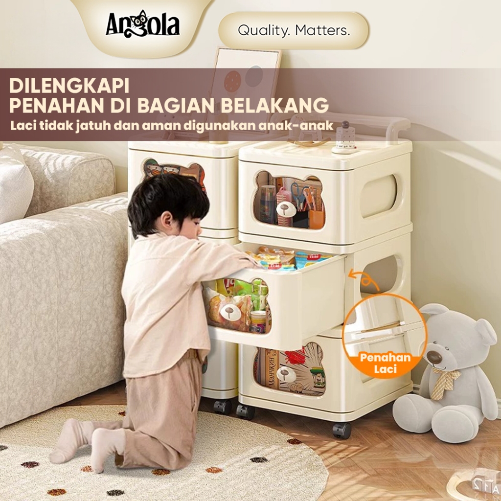 ANGOLA Rak Laci Dorong Ekstra Besar Teddy Bear C59C63 Rak Troli SerbagunaLemari Pakaian Multifungsi