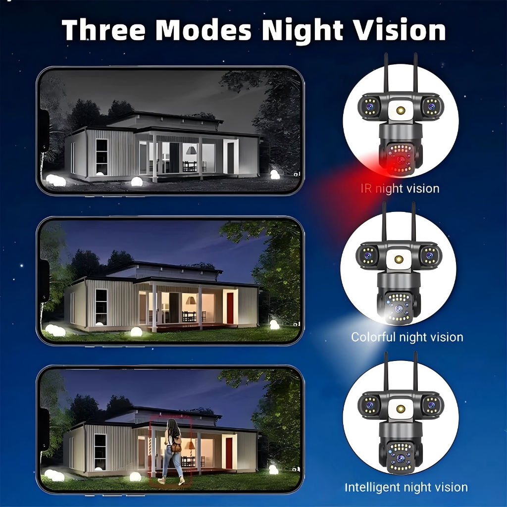 Camtrix 3 lensa CCTV V380 Pro Camera Kamera CCTV 4G SIM 18MP HD Outdoor Smart Camera PTZ Wireless WiFi 360° Rotation