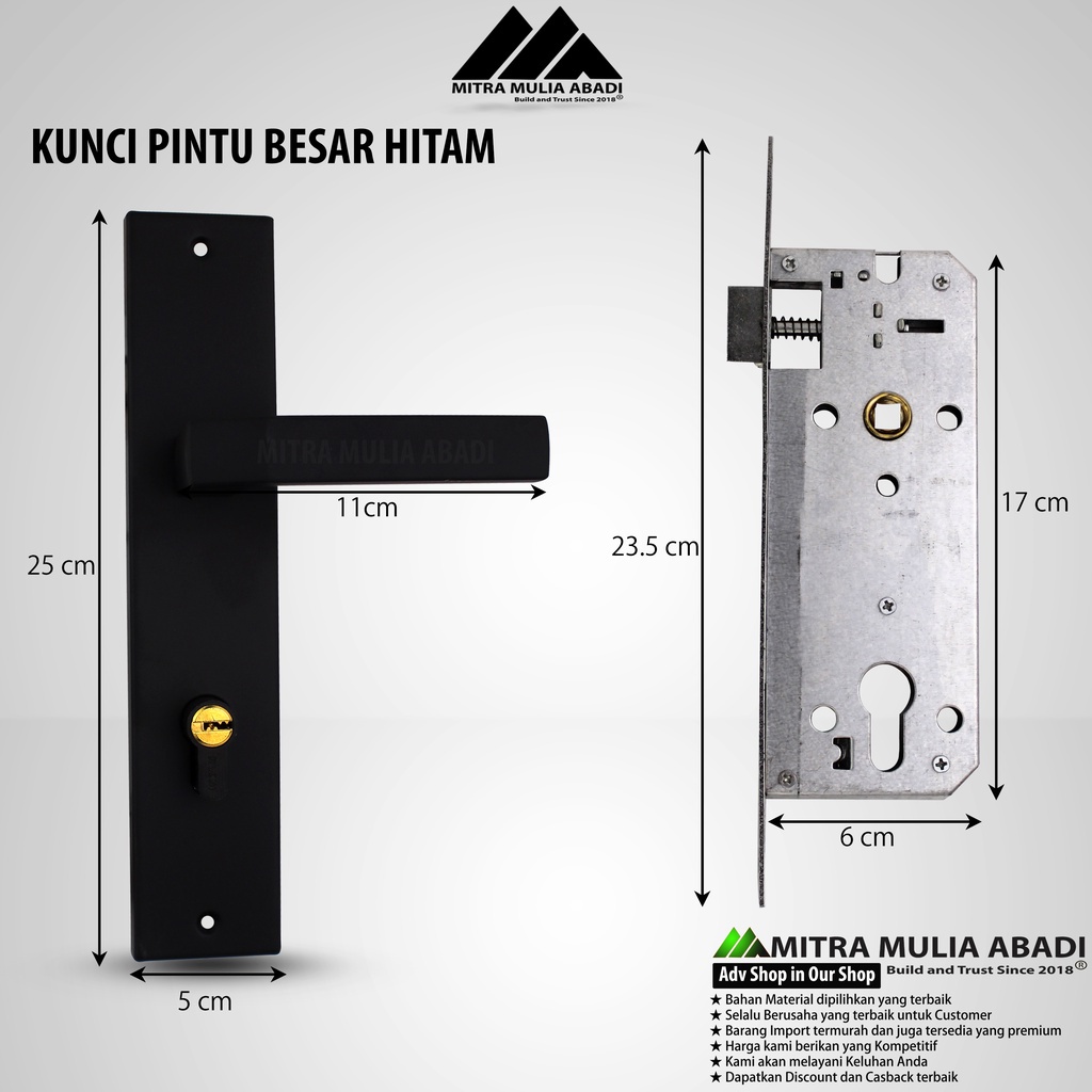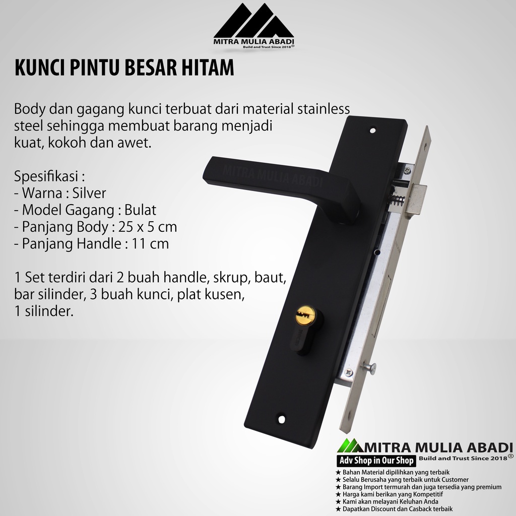 Kunci Pintu Handle Besar Hitam | Door Lock Handle | Fullset