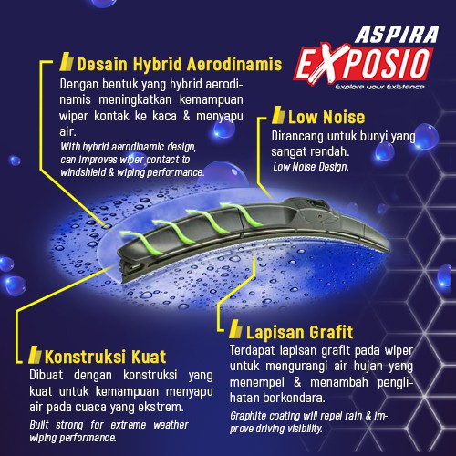 Wiper Blade Hybrid Graphite ASPIRA EXPOSIO Avanza, Rush, Vios, Fortuner, Ertiga ukuran 21" (AE-WBHG21H)