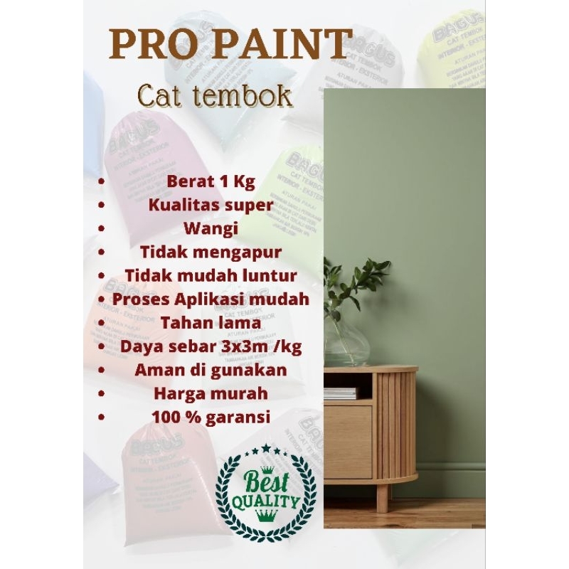 Cat Tembok Pro Paint Dinding Rumah Kiloan Interior Dan Eksterior 1kg