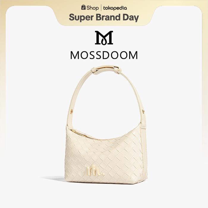 MOSSDOOM TAS WANITA CELESTIA BAG TREN FASHION TAS BAHU ANYAMAN VINTAGE - BEIGE WHITE