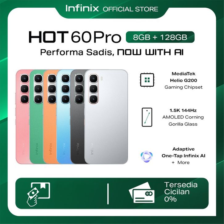 INFINIX HOT 60 PRO 8/128GB 50MP 5160MAH HELIO G200 6.78 INCH 144HZ AMOLED NFC UP TO 16GB EXTENDED RAM FREE ONGKIR MURAH