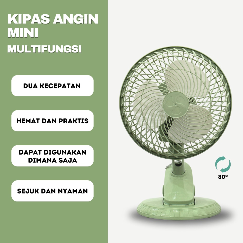 [ Pplus ] Kipas Angin Multi Fungsi Jepit + Meja Duduk + Dinding Tembok Muter Kiri Kanan Ukuran 8 Inch 25 Watt