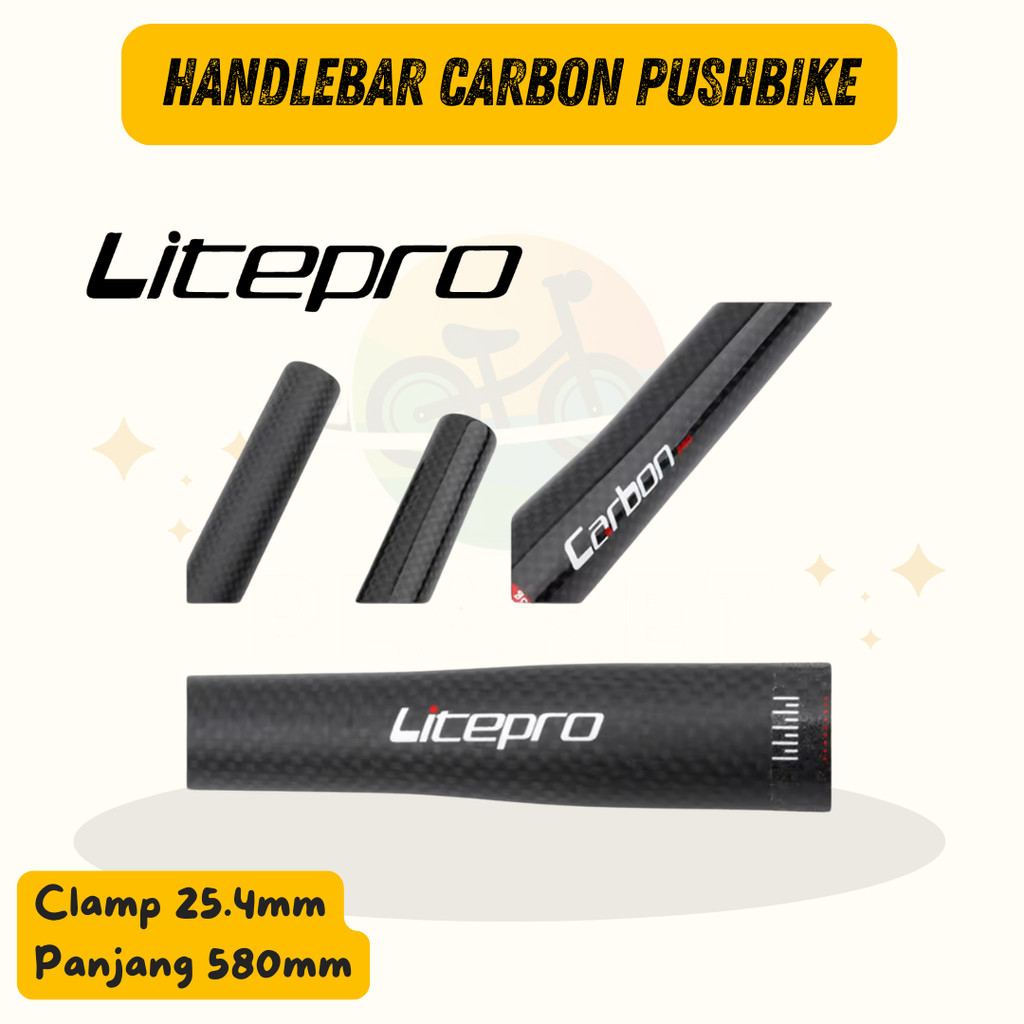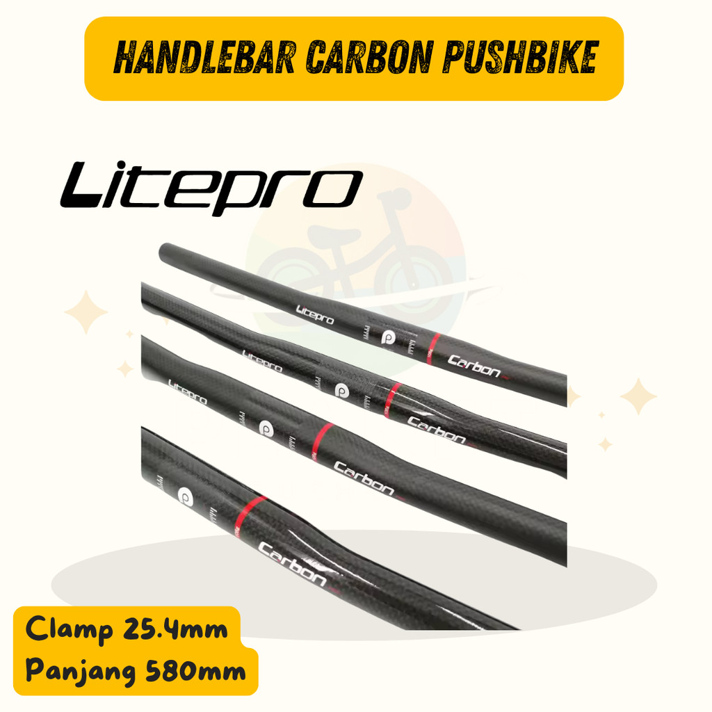 LITEPRO Handlebar Stem Stang Sepeda Carbon untuk Pushbike Balance bike Ukuran Clamp 25.4mm x Panjang 580mm