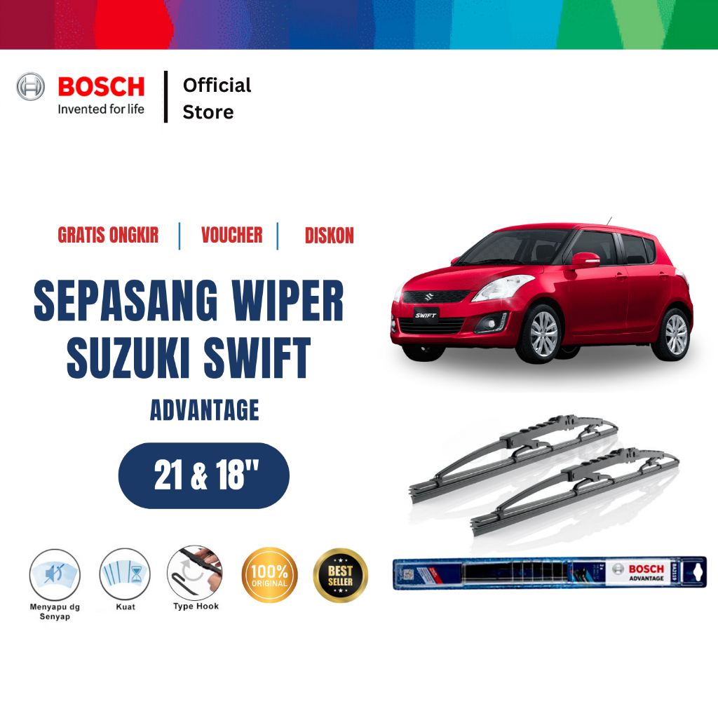 Bosch Sepasang Wiper Kaca Mobil Suzuki Swift 2008 Advantage 21 dan 18 Inci