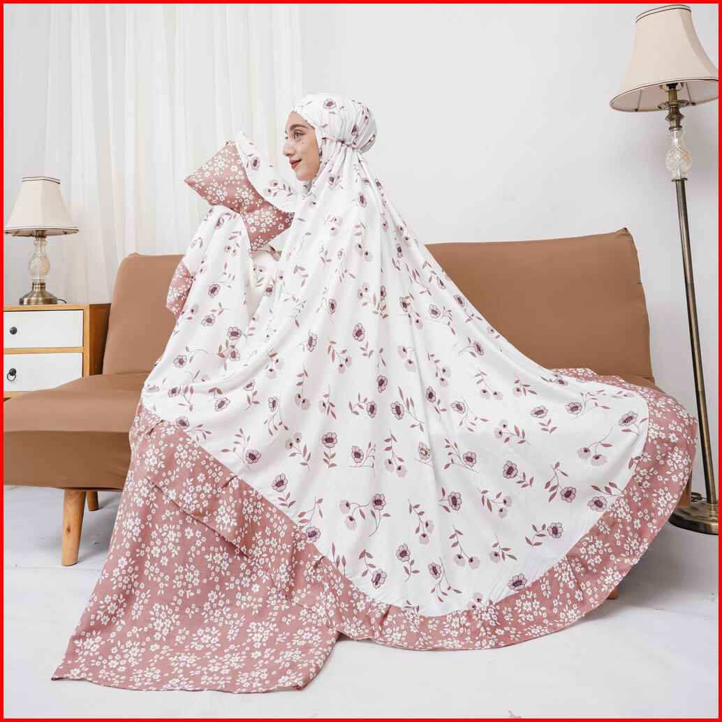 Mukena Dewasa Travel Jumbo Terbaru Bahan Rayon Adem Motif Bunga