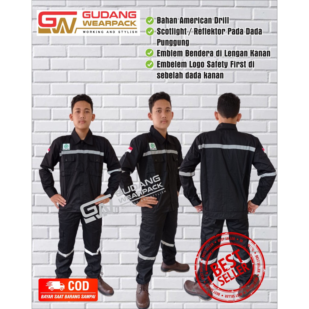 Setelan Wearpack Baju dan Celana kerja Warna Hitam Polos 1 set - gudang wearpack