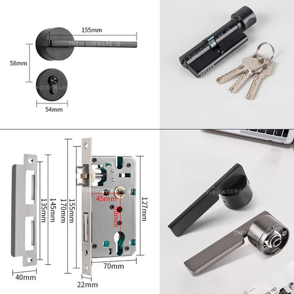 Gagang Pintu Gaya Eropa / Kunci Handle Lock Door Bedroom Living Room Mechanical Anti-Theft Security Mute (1 SET)