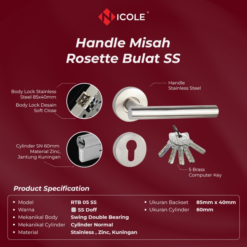 Kunci Pintu Misah / Kunci Pintu Set Stainless Steel / Handle Rosette