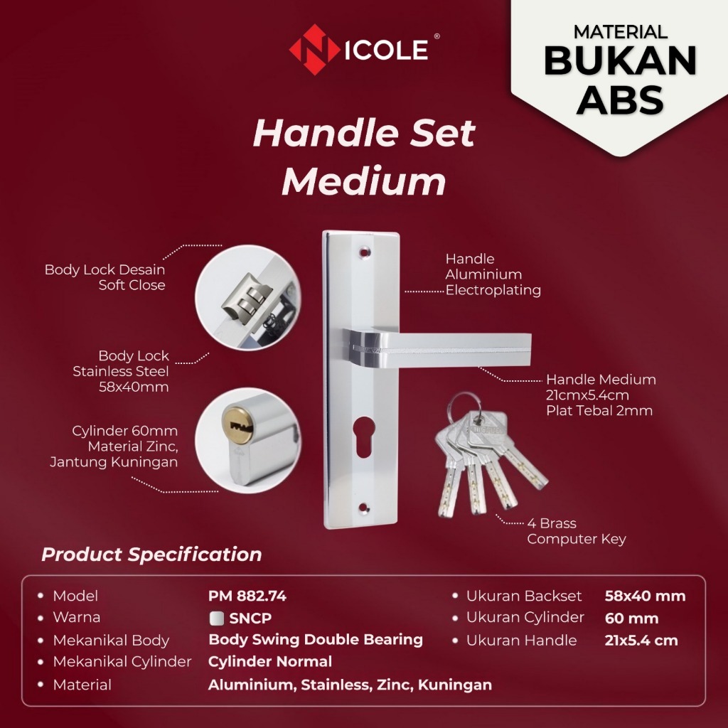 Nicole Gagang Pintu Set Kayu Tanggung 20cm / Handle Medium Set