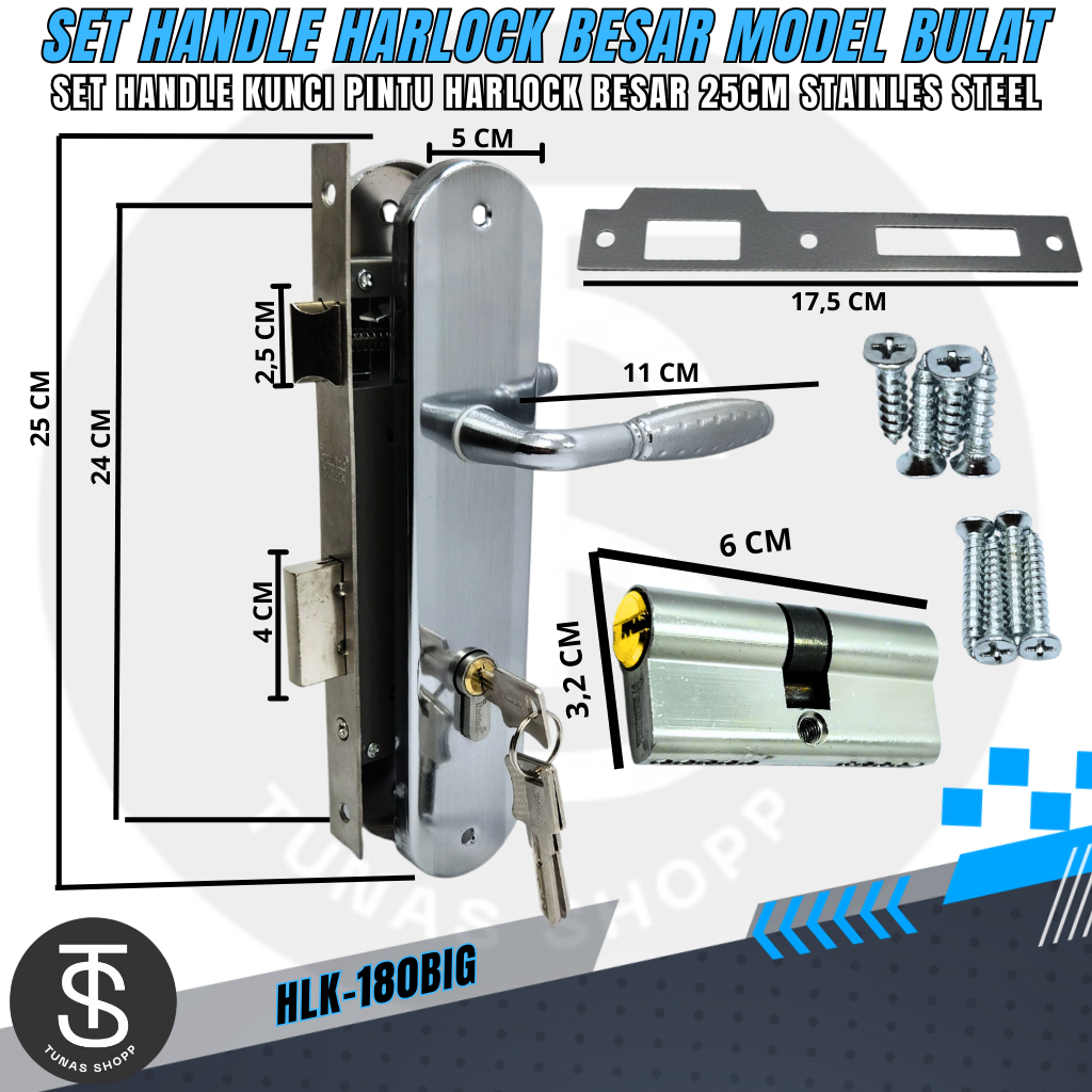 Set Handle Kunci Pintu HARLOCK Besar 25cm Model Bulat / Handle Stainless Steel Kuat Anti Karat Elegan Minimalis HLK-180B