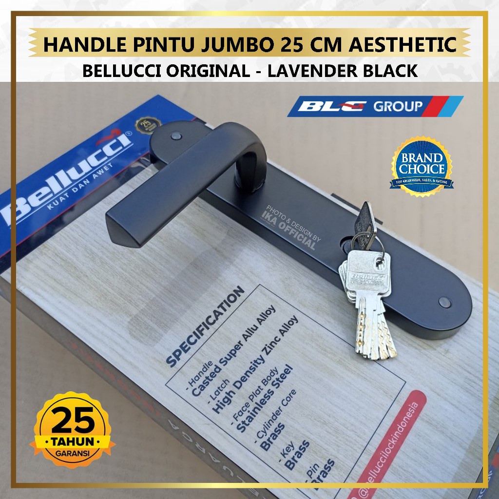 HANDLE BELLUCCI KUNCI PINTU LOCKSET COMPLETE LAVENDER MB BLACK 25 CM GREEN LABEL BERGARANSI 25 TAHUN