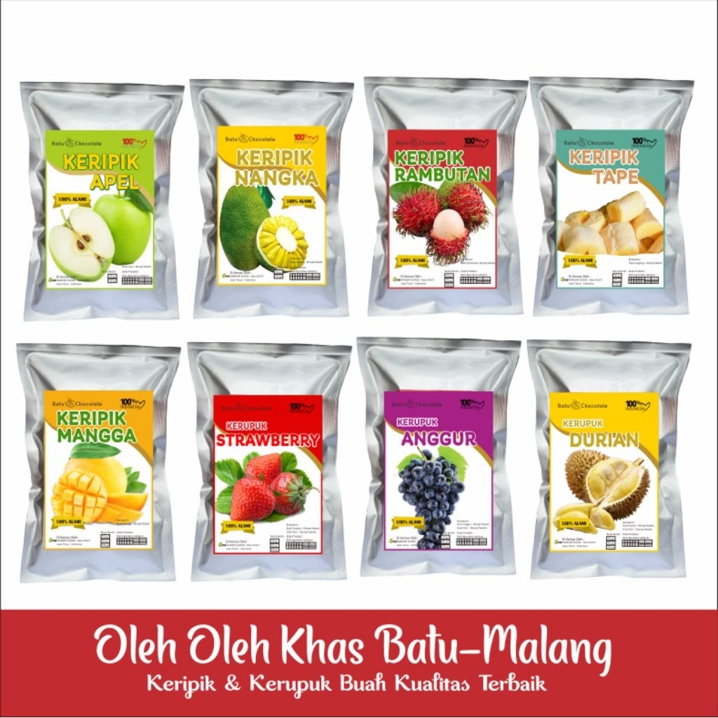 Batu Chocolate Keripik Buah Sayur Apel Nangka Berat 50 g - Keripik Sayur - Kerupuk Strawberry Durian - Oleh oleh Khas