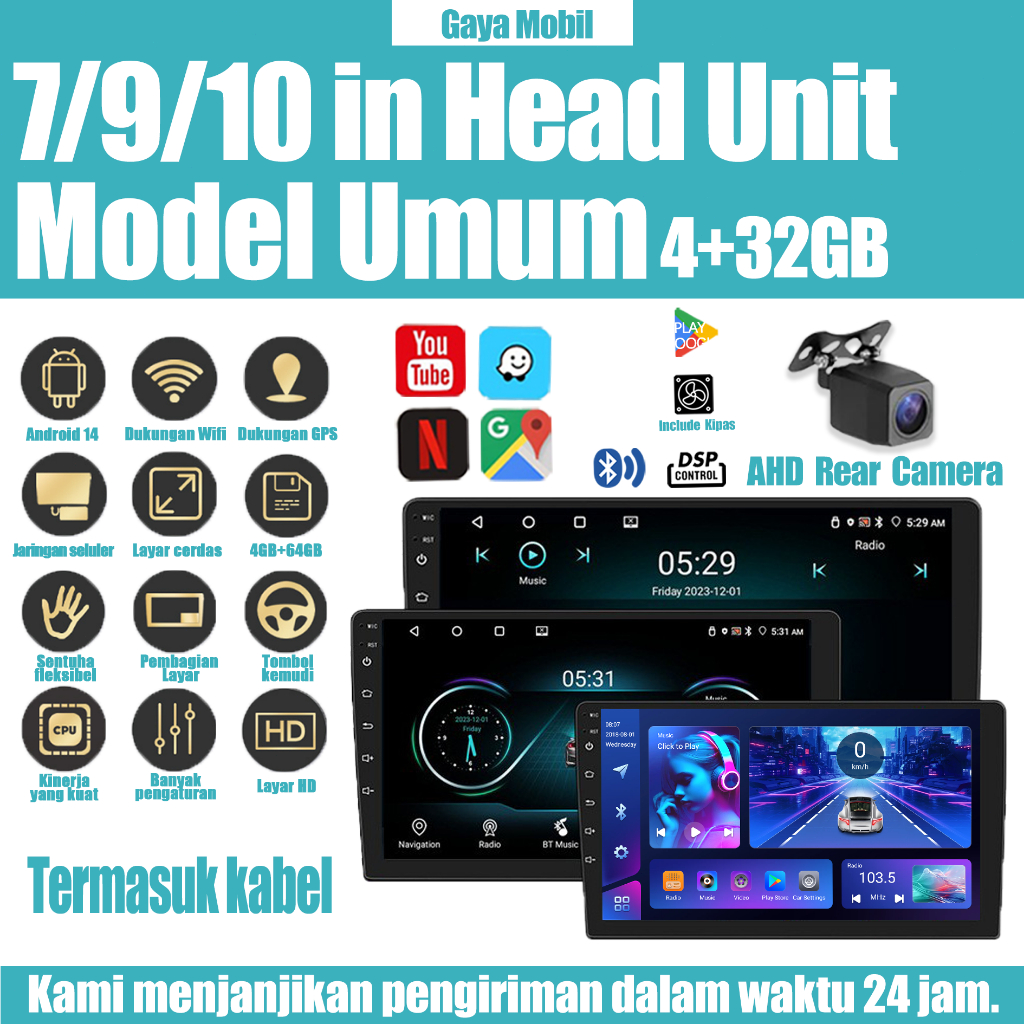 4+32G head unit android 9 inch Android13 AHD Cam DSP Dukungan WiFi GPS Berlaku untukr Semua mobil Navigasi Mobil IPS Scr