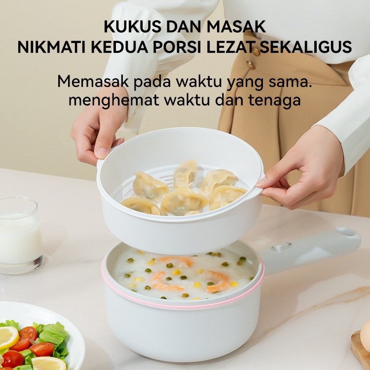 Panci Listrik Mini Wajan Listrik Dua Dalam Satu Kompor Listrik Multifungsi 2l Kompor Kecil Putih