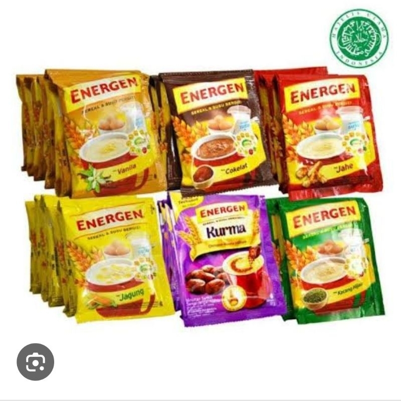 Energen 10pcs Coklat, Energen 10pcs KcgIjo, Energen 10pcs Vanila, Energen 10pcs Jahe, Energen 5pcs Vanilla, Energen 5pcs KcngIjo, Energen 5 pcs Coklat