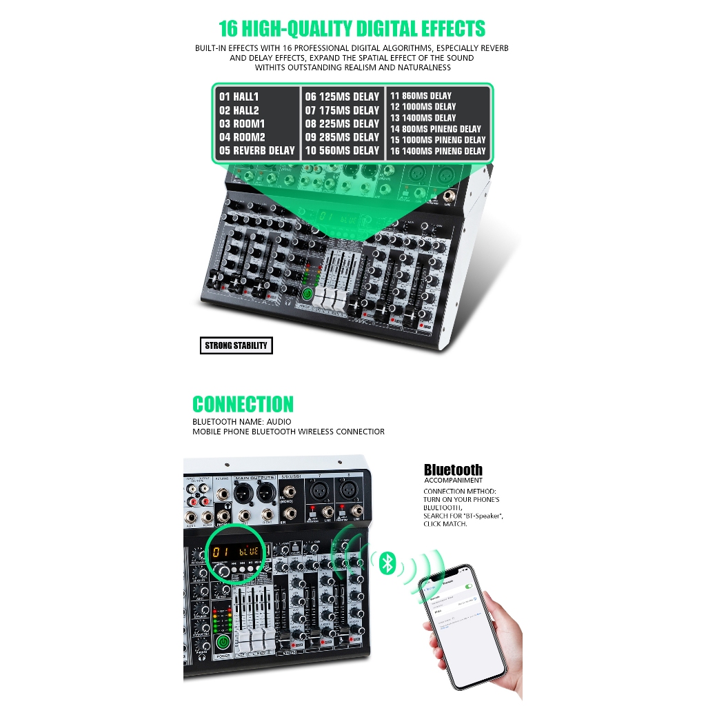 Mixer Audio Profesional Aibedo KP Series 4/6/8 Channel dengan Bluetooth, 99DSP, Antarmuka Audio USB, dan Perekaman MP3 -