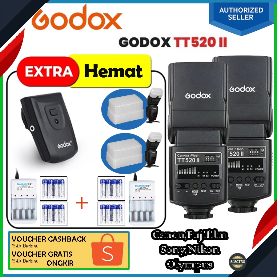Paket 2in1 Flash GODOX TT520II TT520 II + Trigger Godox For Canon Nikon Sony Fujifilm