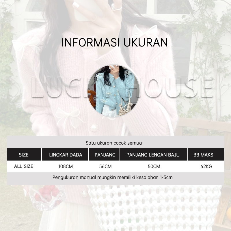 【LUCKY HOUSE】CARDIGAN PITA IMUT COQUETTE RIBBON ATASAN WANITA LENGAN PANJANG LONGSLEEVE KNITWEAR