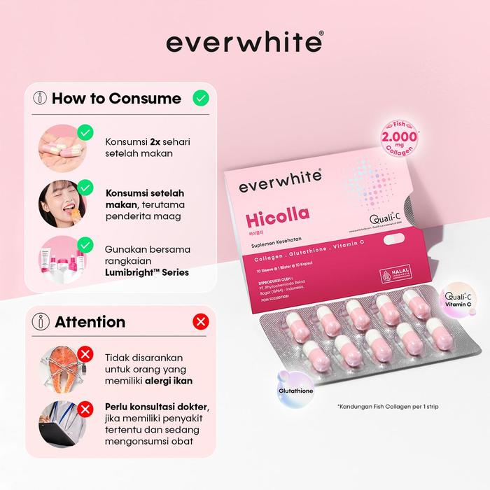EVERWHITE HICOLLA CAPSULE ISI 5 STRIPES MINUMAN KOLAGEN PENCERAH KULIT - COLLAGEN DRINK - 5 STRIPES