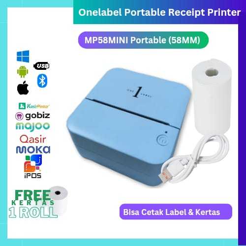 Printer Onelabel Thermal Bluetooth 58mm Portable Baterai Kasir Pocket Mini High Quality