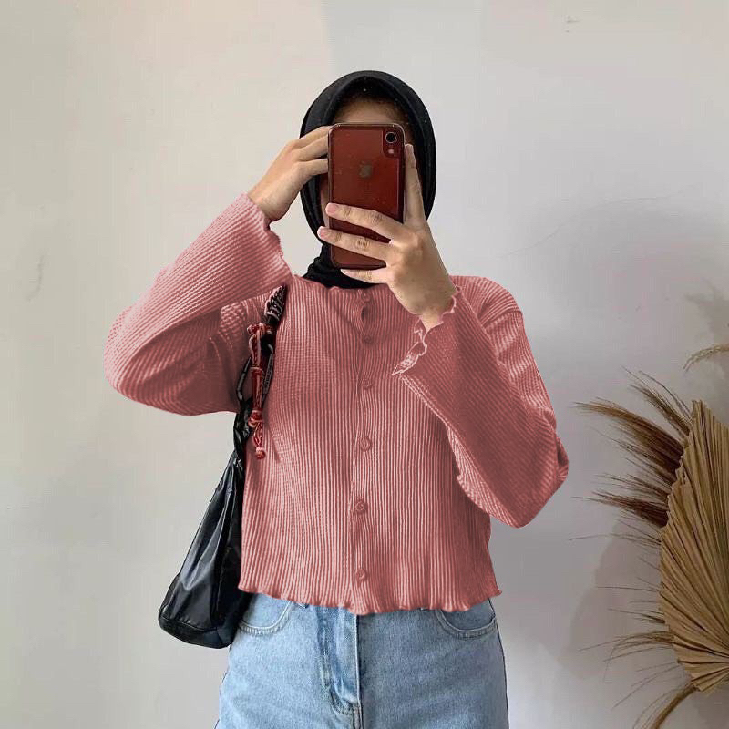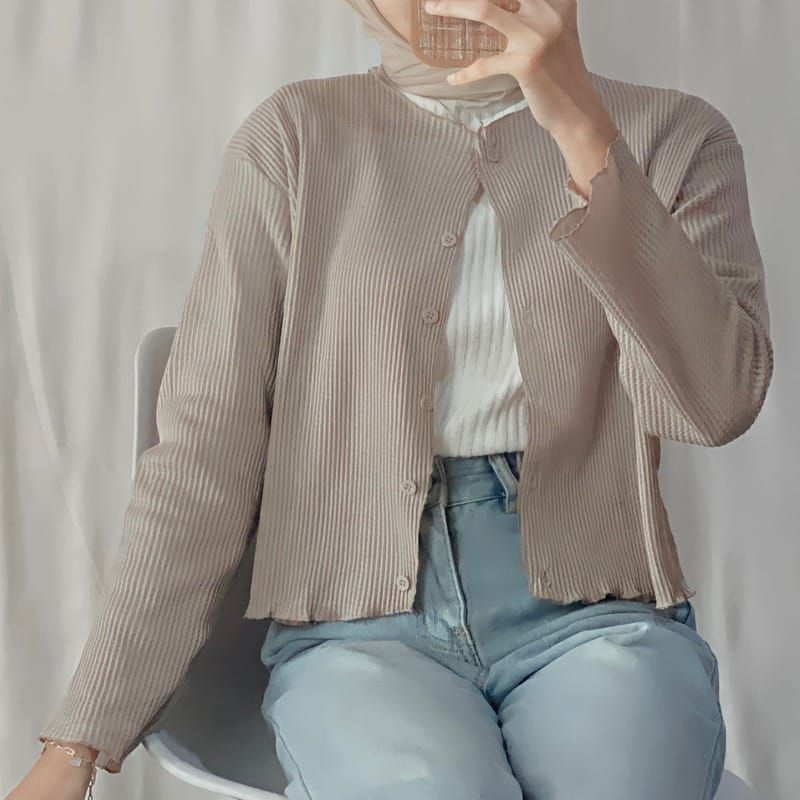 CARDIGAN RAJUT CROP PREMIUM KANCING DEPAN WANITA LENGAN PANJANG TERBARU KOREAN STYLE BAHAN RIB WAFFLE