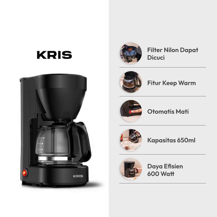 [Mall] AZKO KRIS 650 ML COFFEE DRIP MAKER DENGAN AROMA MESIN KOPI ESPRESSO MACHINE ALAT PEMBUAT MINUMAN KOPI - HITAM
