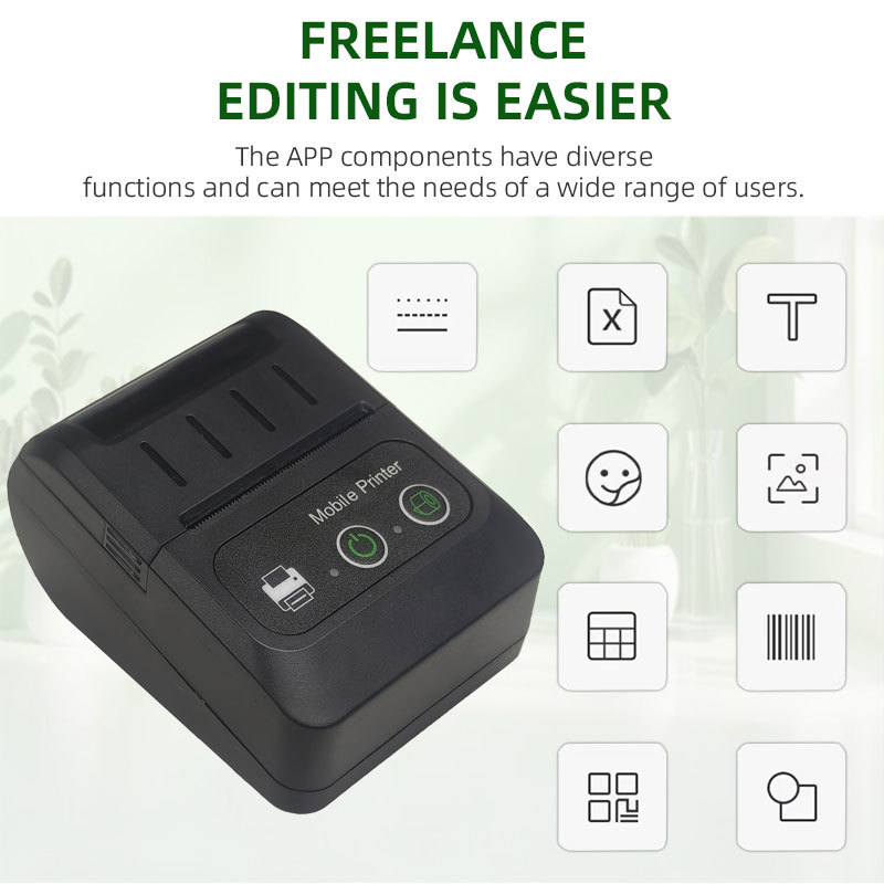 Printer Mini Portable Bluetooth Thermal 58mm Free Gift 3 Roll Kertas Cetak Resi Nota Struk Penjualan