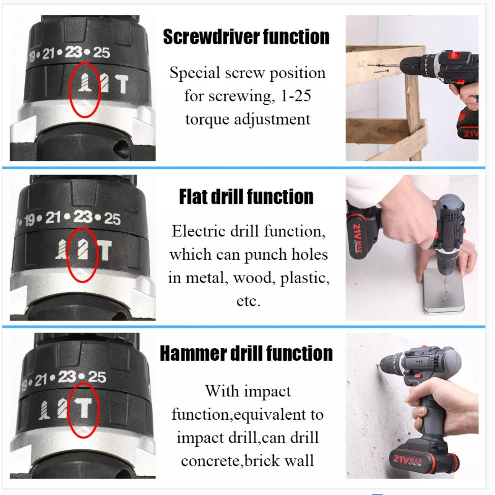 Mesin Bor Reaim 2025 Listrik Baterai 218v 3 Speed Cordless Electric Drill Multifunction