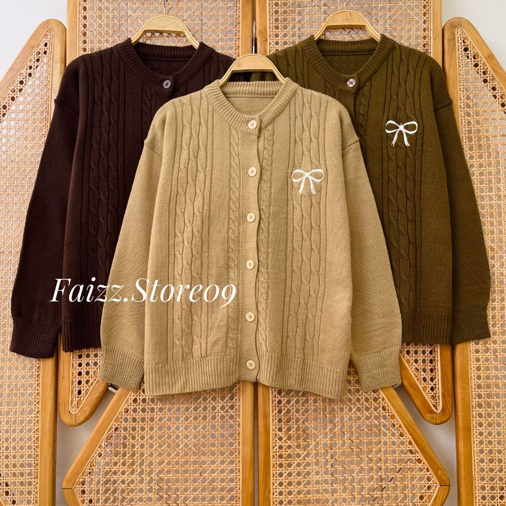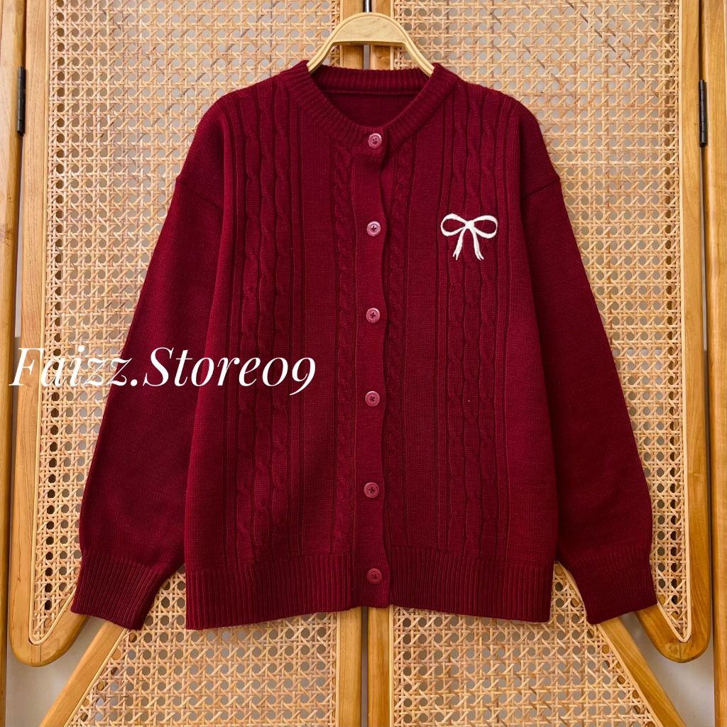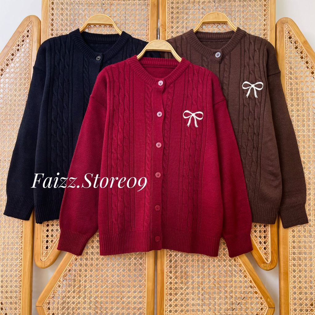 OCLO CARDY KNIT - OUTER ATASAN CARDIGAN RAJUT WANITA KANCING MOTIF CABLE BORDIR PITA SIMPLE BAHAN LEMBUT KOREAN STYLE