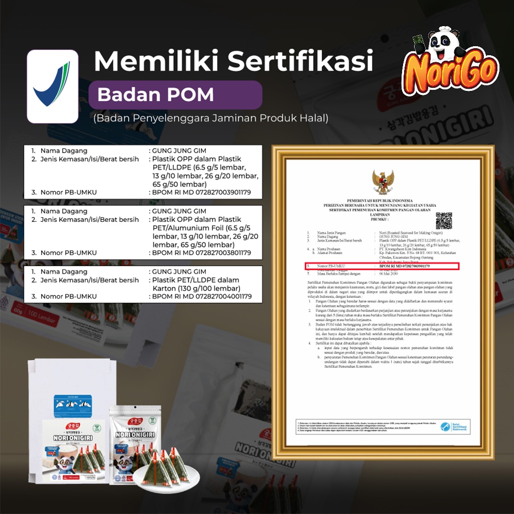NORI ONIGIRI Nori Wrapper Khusus Bungkus Nori Triangle Sushi Nori ISI 1 & 5 Lembar