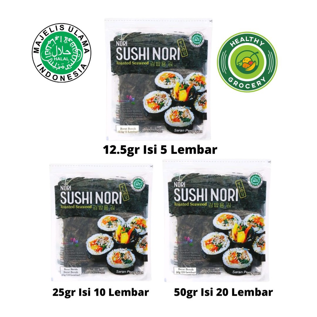 Javasuperfood Sushi Nori Halal 5 Lembar 10 Lembar 20 Lembar Seaweed Rumput Laut Untuk Kimbab Gimbab JAVA SUPER FOOD