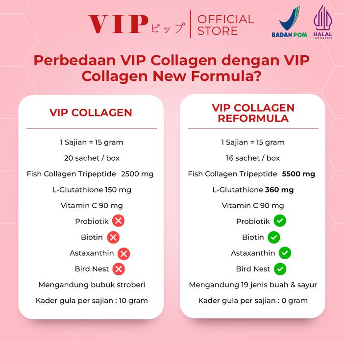 VIP COLLAGEN KOREA NEW FORMULA - MINUMAN KOLAGEN 5500MG + GLUTATHIONE 360MG | 3 BOX ISI 48 SACHET | BPOM & HALAL - 3 BOX
