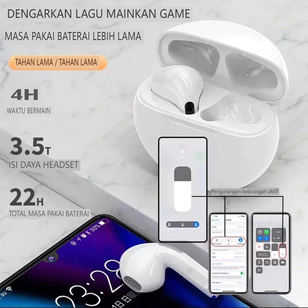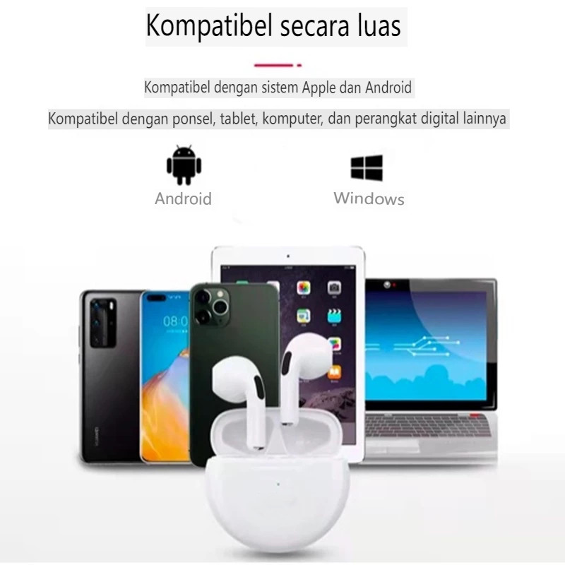 Headset Pro6 Tws Bluetooth Earbuds Nirkabel Kontrol Sentuh 9d Stereo Dengan Mic