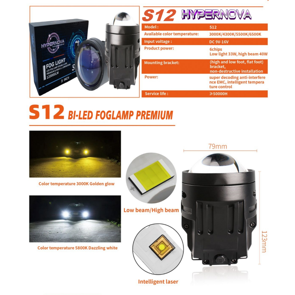 HYPERNOVA - ORIGINAL LAMPU BILED FOGLAMP HYPERNOVA S12 80 WATT BLUELENS FOGLAMP 3 WARNA 1 WARNA LAMPU MOBIL KABUT
