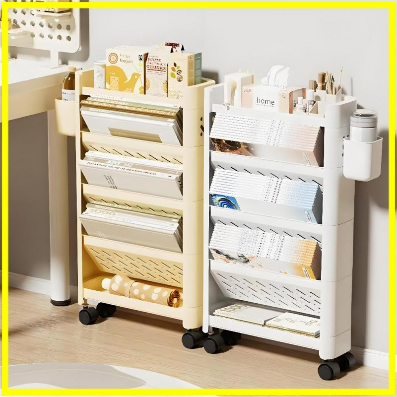 Rak Buku Roda Rak Serbaguna Rak Penyimpanan Buku Portable Rak Susun Troli Plastik Multifungsi Organizer Stationary Rak Dapur