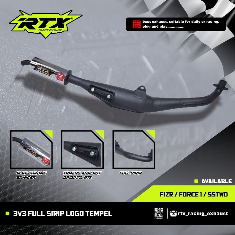 Knalpot standar racing 3v3 Fizr f1zr force1 perut hitam NEW Fullsirip KOMPETISI by RTX RACING EXHAUST
