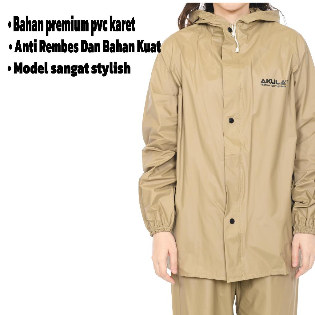 Jas hujan pria wanita setelan celana anti rembes bahan karet pvc terbaik by Akula
