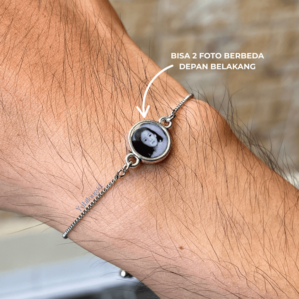 Yubilong.id - Gelang Custom Foto 2 Sisi Dilapisi Resin Tahan Karat