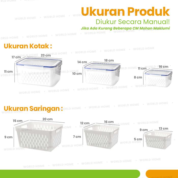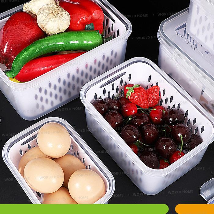 [Mall] WHI - 2 SET 6 PCS KOTAK PLASTIK TUTUP PENGUNCI DILENGKAPI SARINGAN TEMPAT BUAH DAN SAYUR WADAH MULTIFUNGSI - KOTA