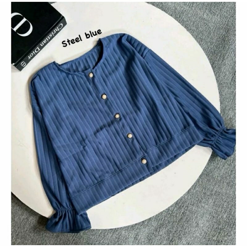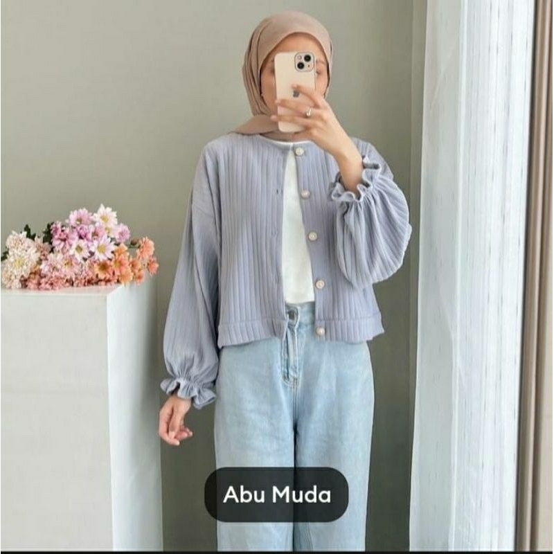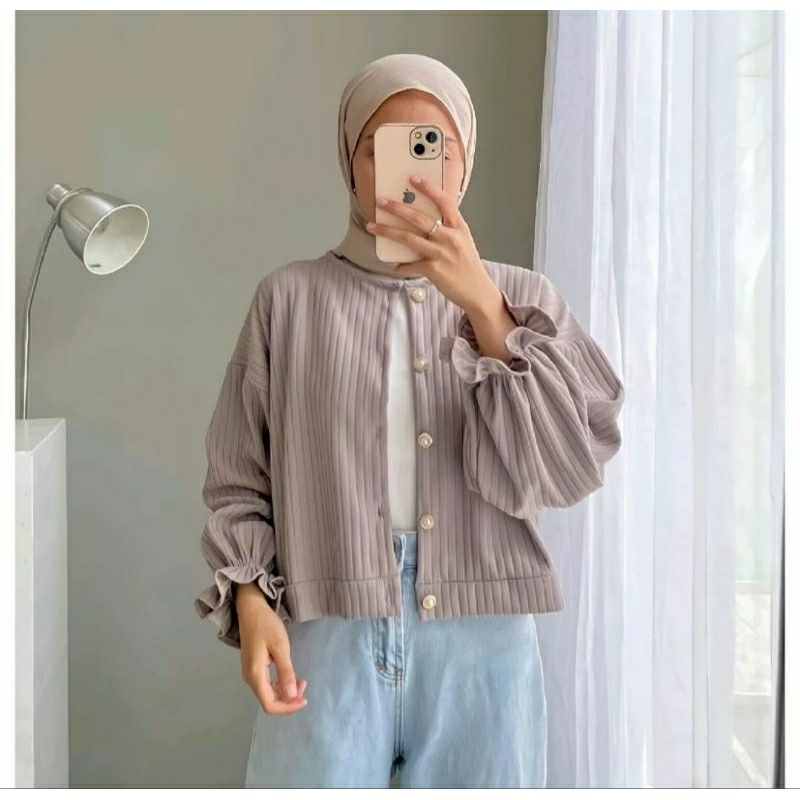 ALIA CARDI VINTAGE KOREA CROP CARDIGAN HORNET PUFFY KNIT BUTON KANCING TERBARU