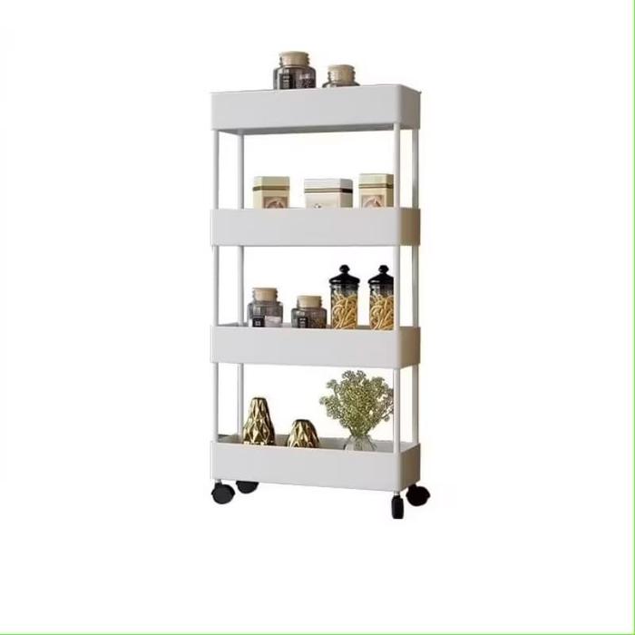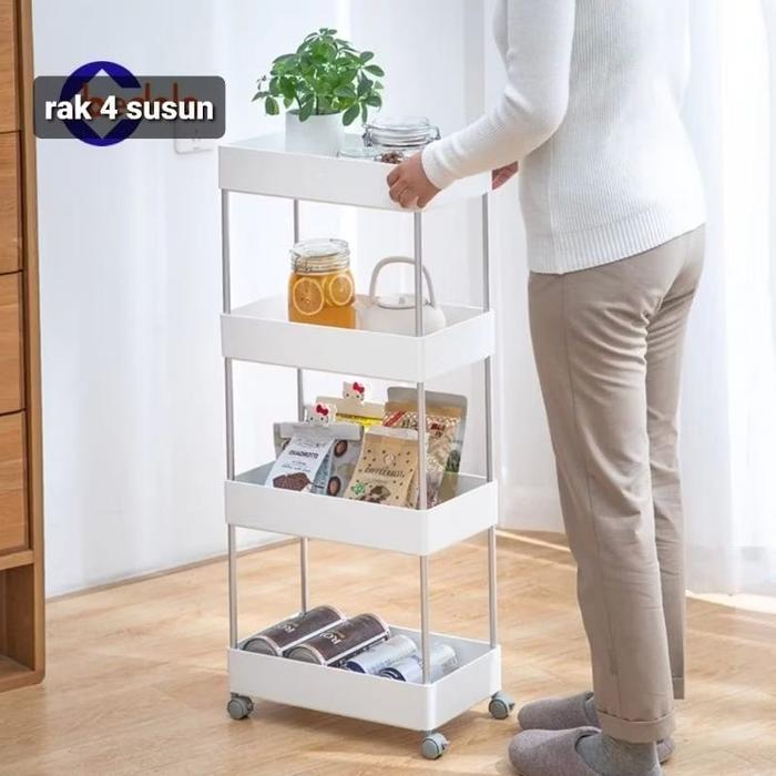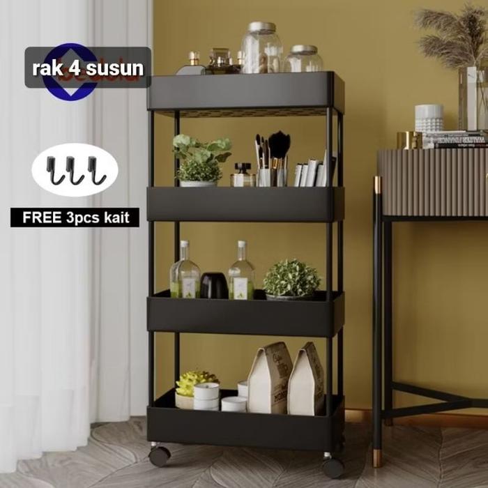 [Mall] SQUARE RAK DAPUR RAK TOILET RAK SUSUN SERBAGUNA 4 TINGKAT DENGAN RODA - HITAM, NO BUBBLE