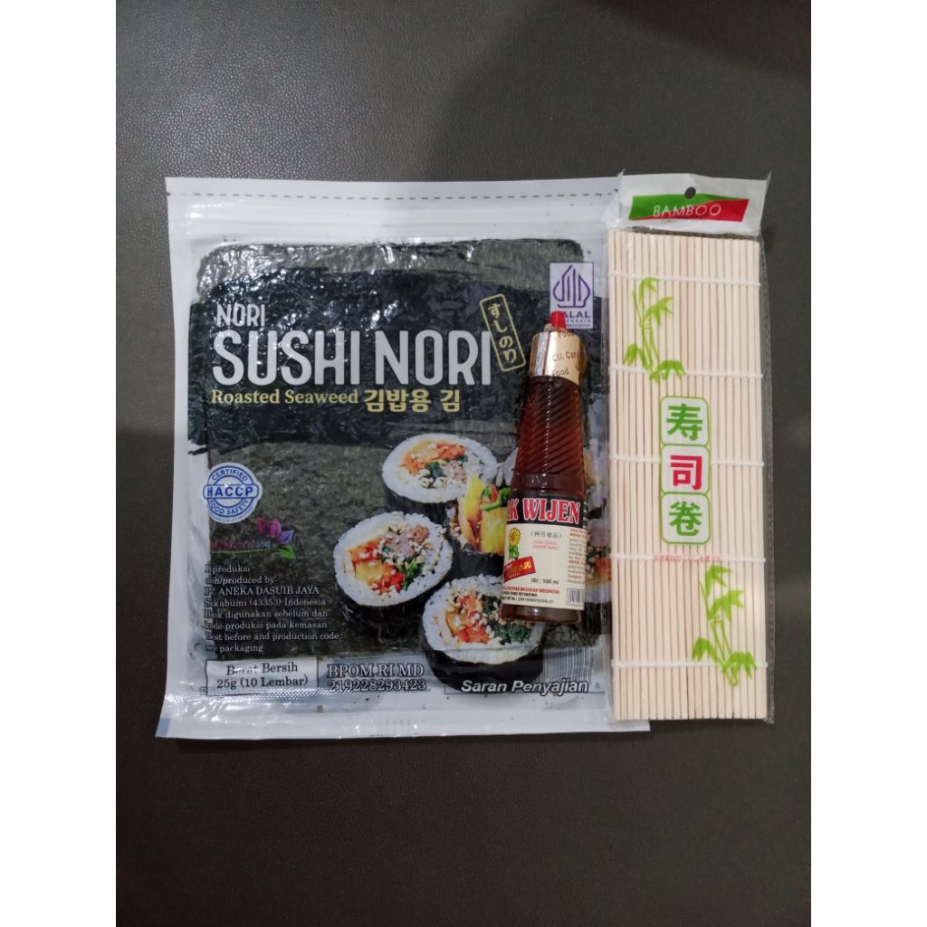 Paket 3B Sushi Nori Isi 10 + Minyak Wijen + Sushi Mat Bamboo