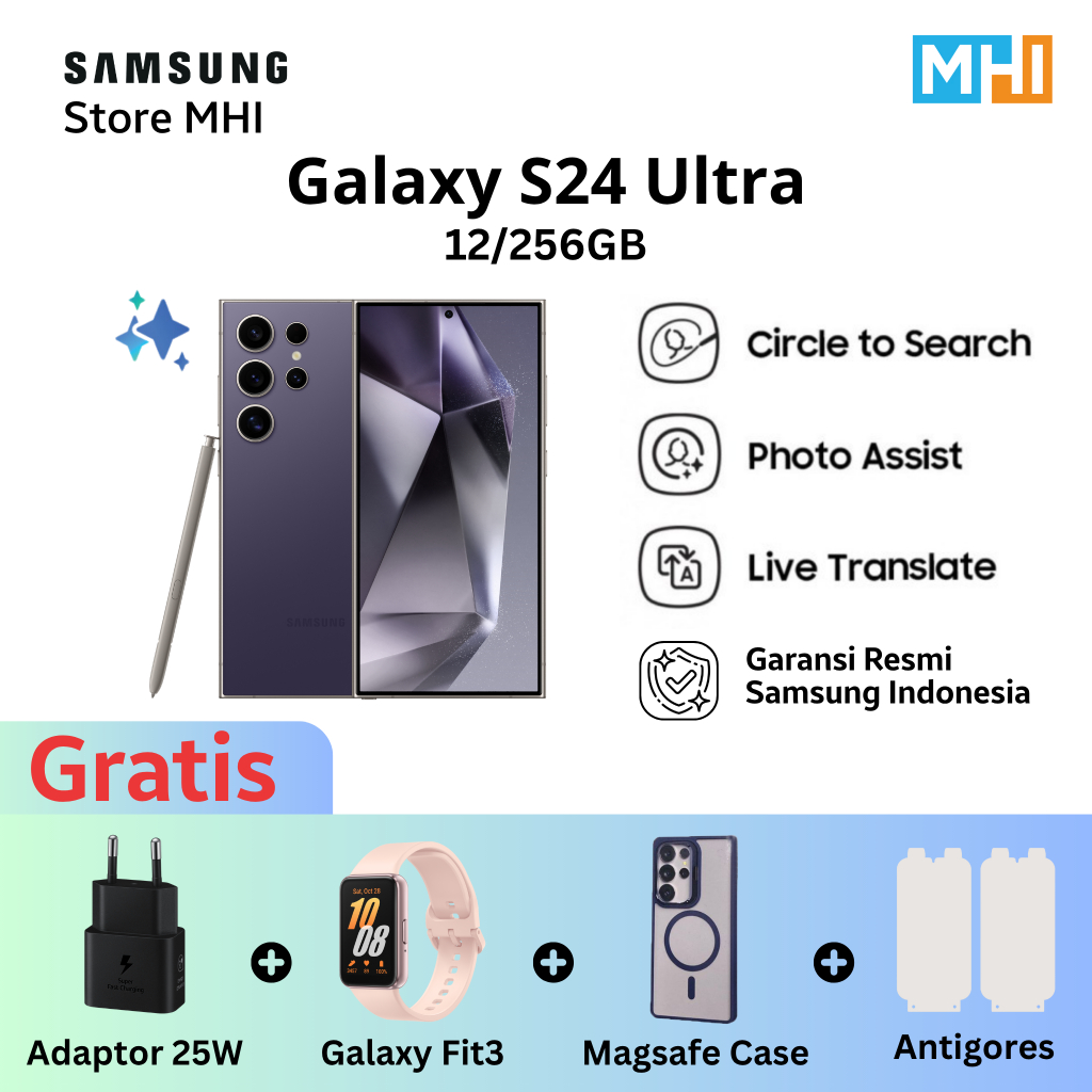 Samsung Galaxy S24 Ultra Handphone AI, Original, Kamera 200MP 12/512GB 12/256GB