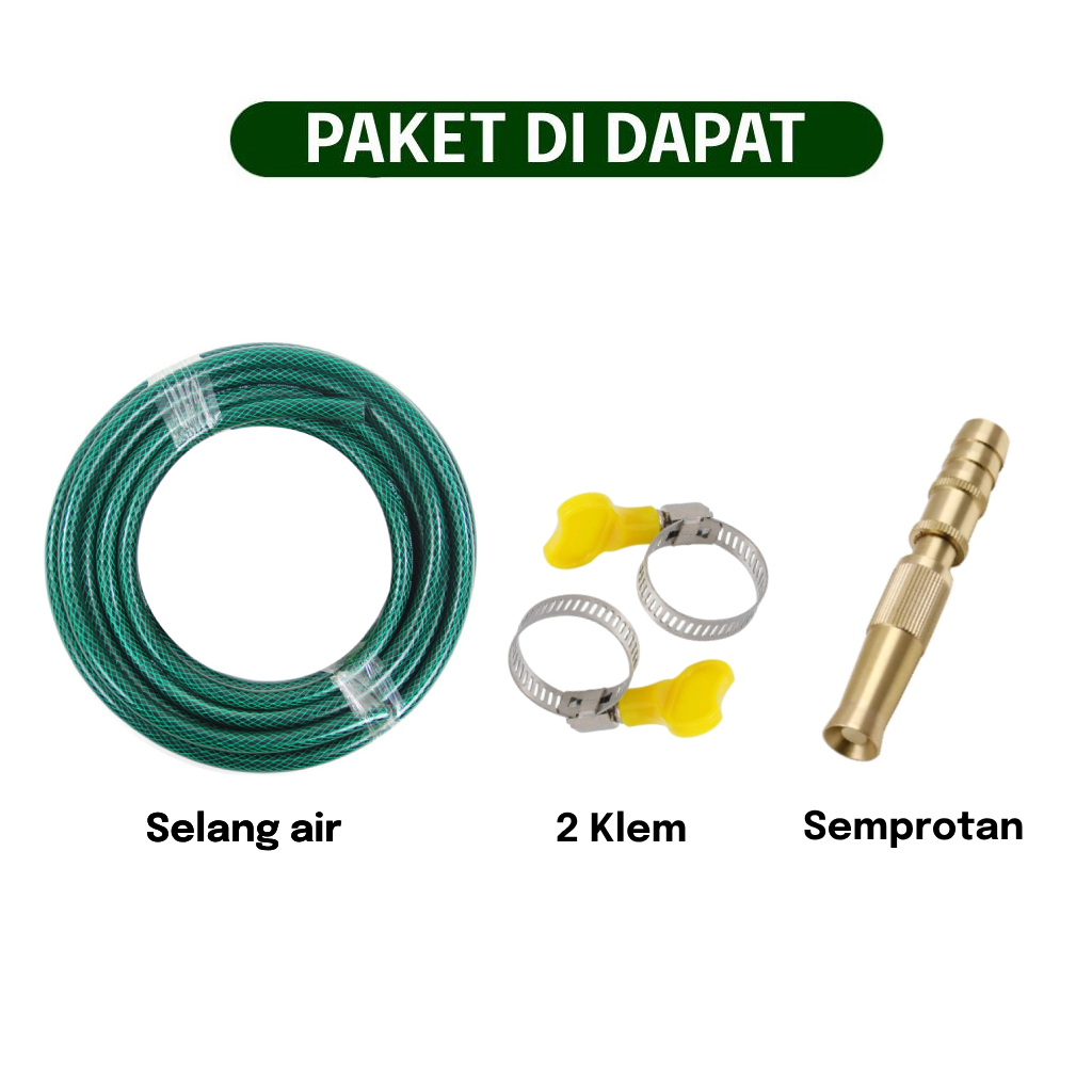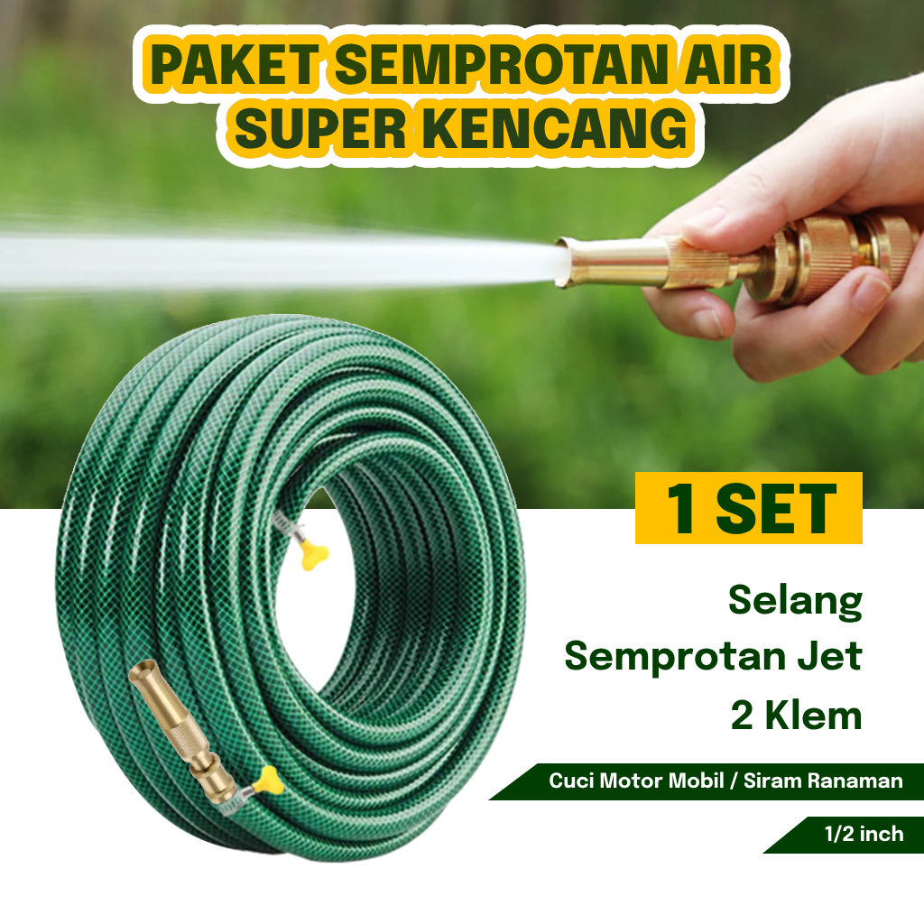 Selang Air Gemuk 12 Inch 15 Meter Sepaket Selang Anti Lumut Semprotan Nozzle Kuningan