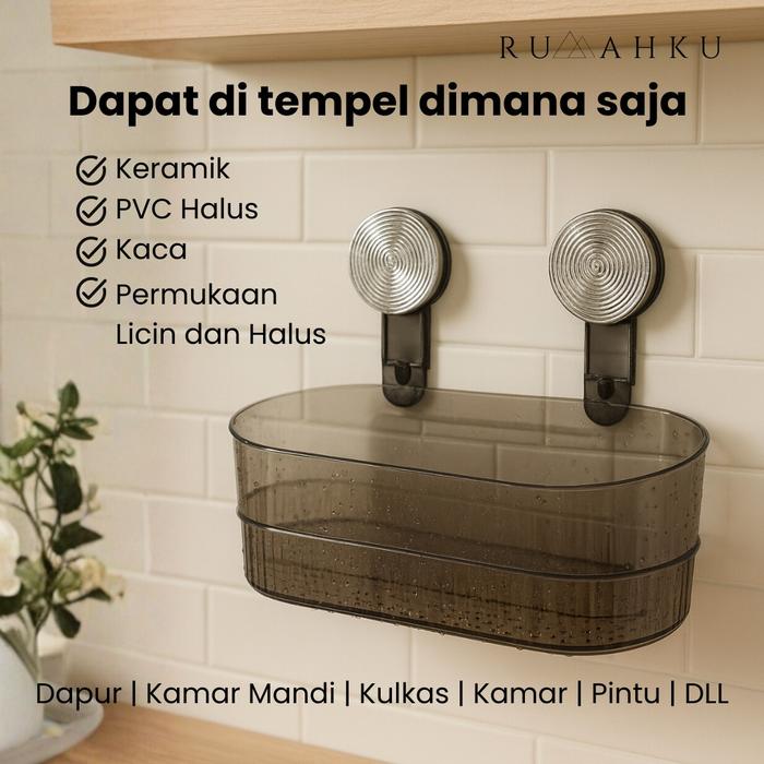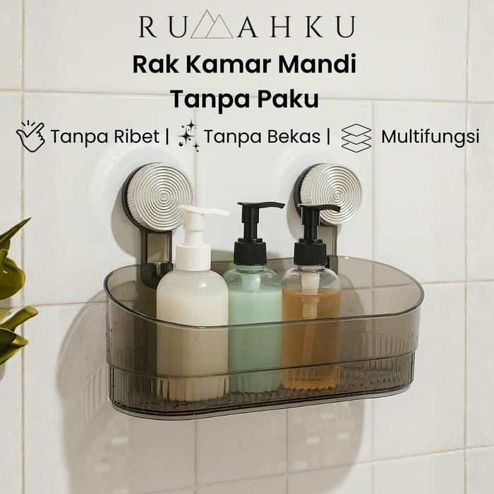 [Mall] RUMAHKU RAK DINDING KAMAR MANDI VAKUM TANPA PAKU SERBAGUNA AESTHETIC RAK TEMPEL DAPUR RAK SABUN - HITAM